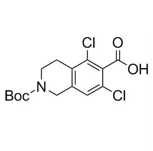 Product Name 2-(tert-butoxycarbonyl)-5,7-dichloro-1,2,3,4-tetrahydroisoquinoline-6-carboxylic acid CAS No. 851784-82-2 application Widely used in pharmaceutical industry package 25kg/drum Molecular Weight 346.21 Molecular Formula C15H17Cl2NO4 Specification Purity: 98% min